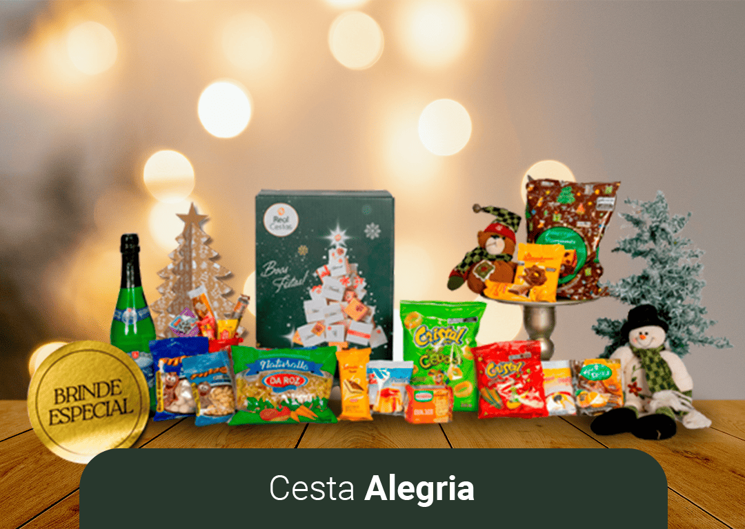 Itens inclusos na Cesta de Natal Alegria: 1 Panetone 300g Romanatto 1 Espumante Fermentado 660ml Armand 1 Bolinho Recheado 27g Duo Bauducco Chocolate 1 Barrinha Goiabinha/Chocolate 25g Bauducco 1 Pão de Mel 30g Bauducco 1 Amendoim sem pele salgado 30g Fritz 1 Macarrão Tricolori 200g Daroz 1 Pudim (preparo) 35g Gostozzo 1 Manjar de Coco Leia Mais