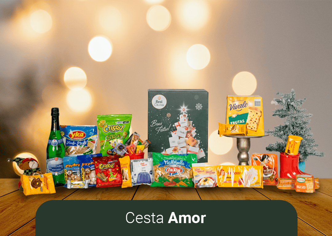 Itens inclusos na Cesta de Natal Amor: 1 Panetone 350g Vivale 1 Espumante Fermentado 660ml Armand 1 Bolinho Recheado 27g Duo Bauducco 1 Barrinha Goiabinha/Chocolate 25g Bauducco 1 Pão de Mel 30g Bauducco 1 Biscoito Wafer 70g Bauducco 1 Wafer 30g Bauducco 1 Macarrão Tricolori 200g Daroz 1 Bala de Goma Gomets 32g Dori 3 Leia Mais