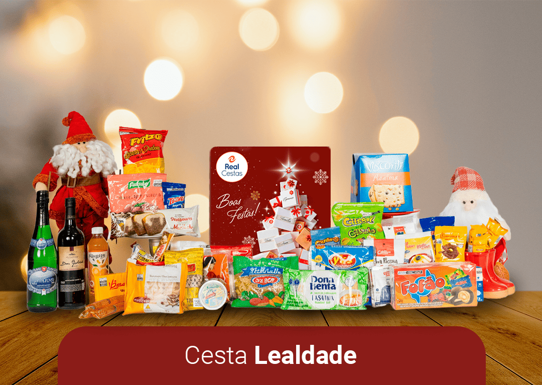 Itens inclusos na Cesta de Natal Lealdade: 1 Panetone 400g Visconti 1 Espumante Fermentado 660ml Armand 1 Vinho Tinto 750ml Don Gabriel 1 Suco de Fruta 400ml Lindoya 1 Tapioca 70g Da Terrinha 1 Bolinho Recheado 27g Duo Bauducco 1 Pão de Mel 30g Bauducco 1 Barrinha Goiabinha/Chocolate 25g Bauducco 1 Biscoito Wafer 70g Bauducco Leia Mais