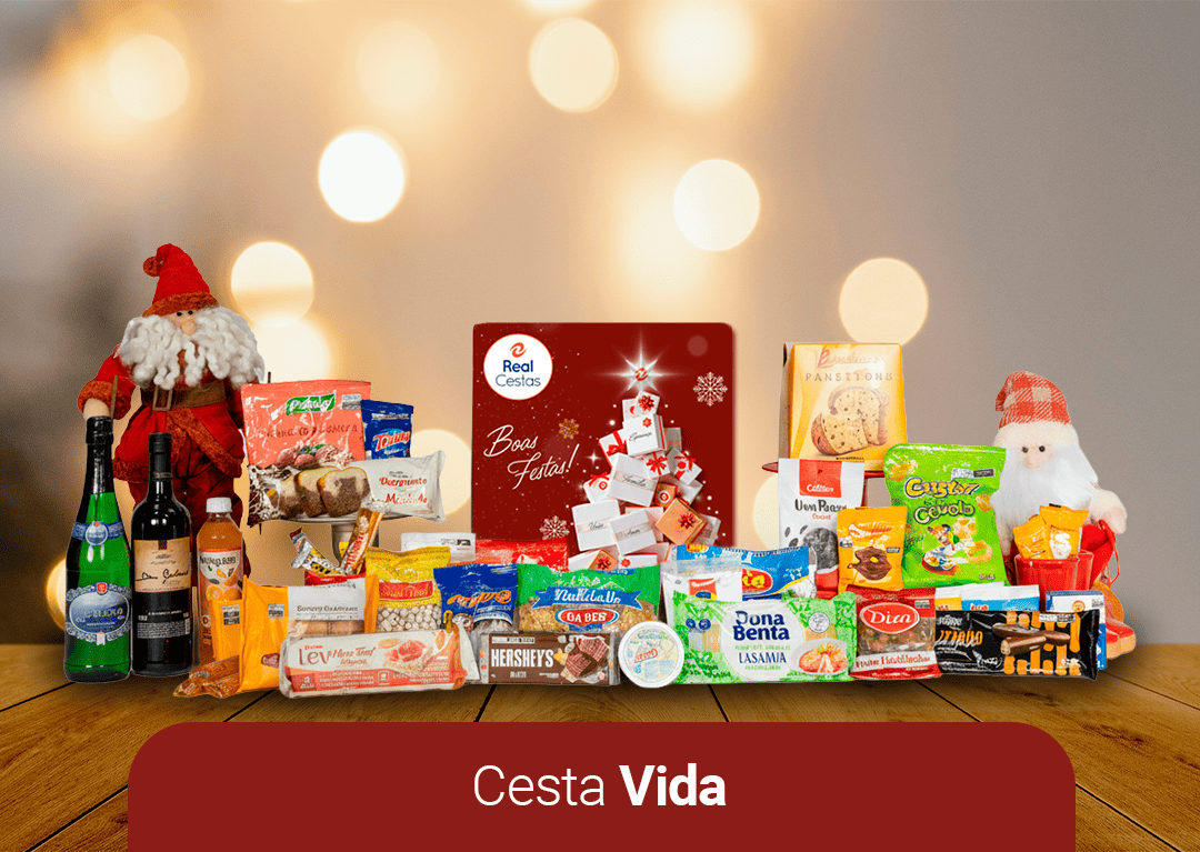Itens inclusos na Cesta de Natal Vida: 1 Panetone 400g Bauducco 1 Espumante Fermentado 660ml Armand 1 Vinho Tinto 750ml Don Gabriel 1 Suco de Fruta 400ml Lindoya 1 Bolinho Recheado 27g Duo Bauducco 1 Barrinha Goiabinha/Chocolate 25g Bauducco 1 Pão de Mel 30g Bauducco 1 Biscoito Wafer 70g Bauducco 1 Torrada Lev 55g Magic Leia Mais